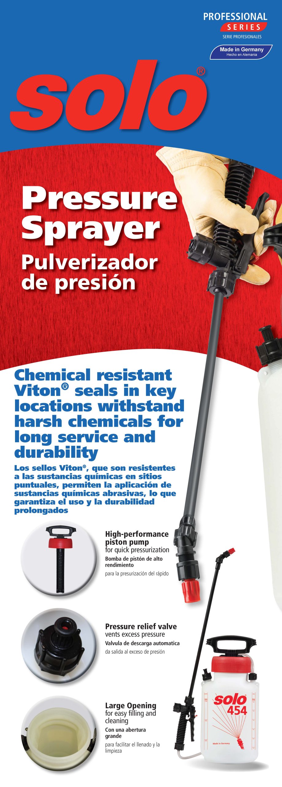 Designed for medium-to-large jobs at home, on the farm, or for professional applications. The ultimate in hand-held sprayers, the 450 series is designed with the professional user in mind. This extremely heavy-duty sprayer will stand up to the toughest of jobs. High-performance, efficient piston pumps pressurize the tanks with as much as 50% more efficiency than the competitor’s.